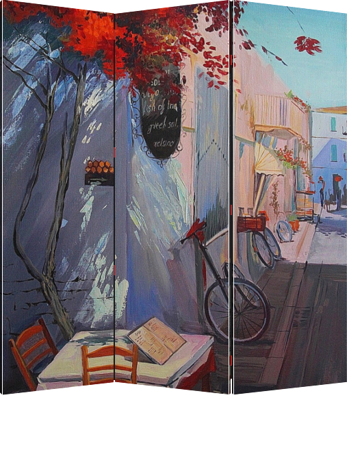 Описание ширмы Очень хорошая новая работа автора. Отлично подойдет почти в любой интерьер. Очень сочные цвета, передает положительную энергетику и способствует хорошему настроению. Работа будет ярким и красивым акцентом вашего интерьера. Южный колорит работы будет