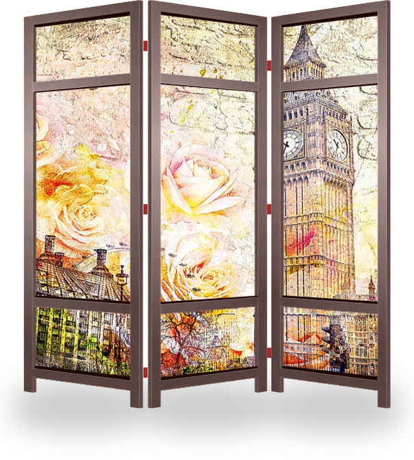 Ширма эконом отлично подойдет для временного размещения, рекламы, для отгораживания объектов интерьера и его дополнения. Лицевая сторона с изображением, обратная сторона открытый каркас