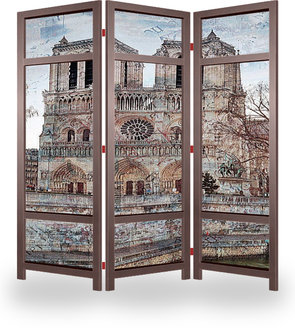 Ширма эконом отлично подойдет для временного размещения, рекламы, для отгораживания объектов интерьера и его дополнения. Лицевая сторона с изображением, обратная сторона открытый каркас