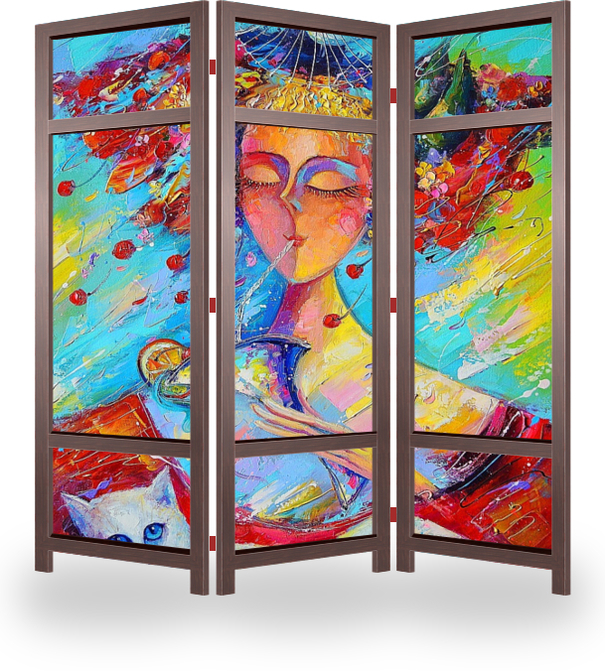 Ширма эконом отлично подойдет для временного размещения, рекламы, для отгораживания объектов интерьера и его дополнения. Лицевая сторона с изображением, обратная сторона открытый каркас