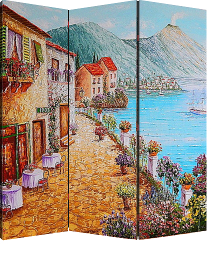 Описание ширмы Картина создана после путешествия в Италию и вдохновлена историей одной пиццерии по названию "Scorini".