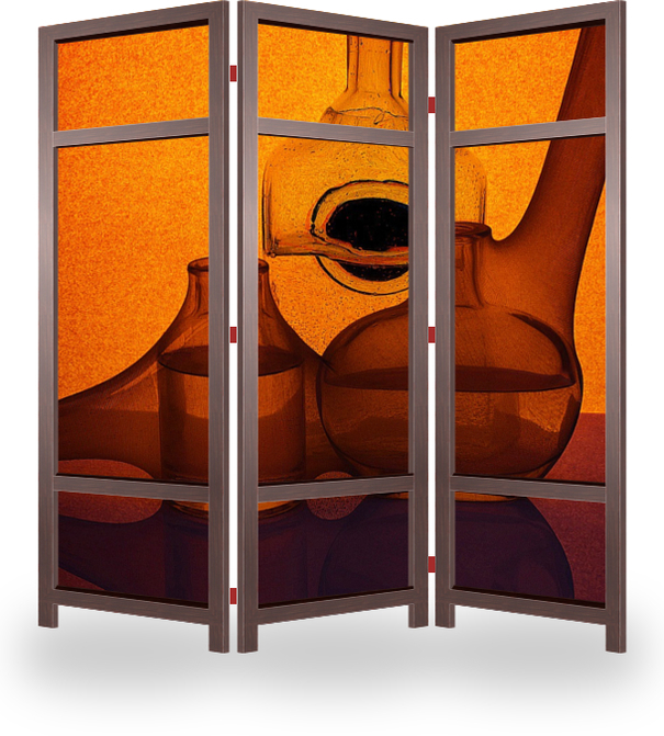 Описание ширмы "Композиция" - это фотоэтюд со стеклом, цветным фоном. Простая композиция, где главную роль играет свет, цвет, формы и пространственное расположение объектов съёмки