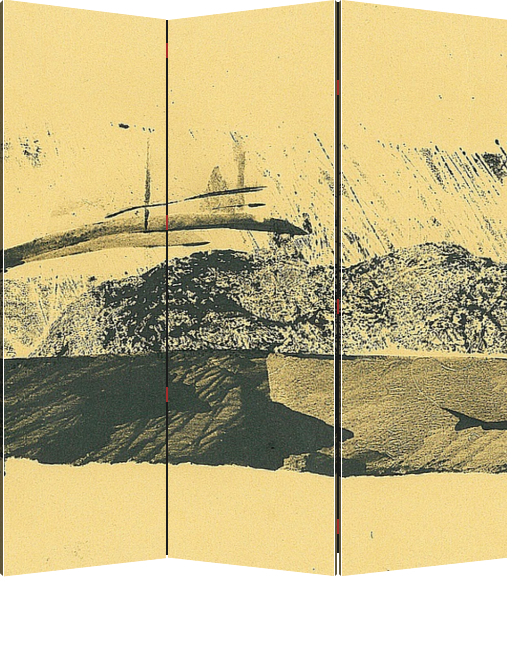 Описание ширмы из серии пейзажных набросков, выполненных художником на основе путешествий по округе города. Попытка предать лёгкость майских пейзажей лаконичными средствами графики.