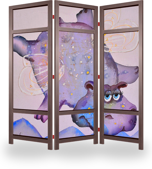 Описание ширмы оригинальная картина выполнена в технике "горячий батик" специальными красками. Картина проработана мелким орнаментом. Подойдёт для оформления гостиной, спальни,детской. Выполнена в сказочном,детском стиле