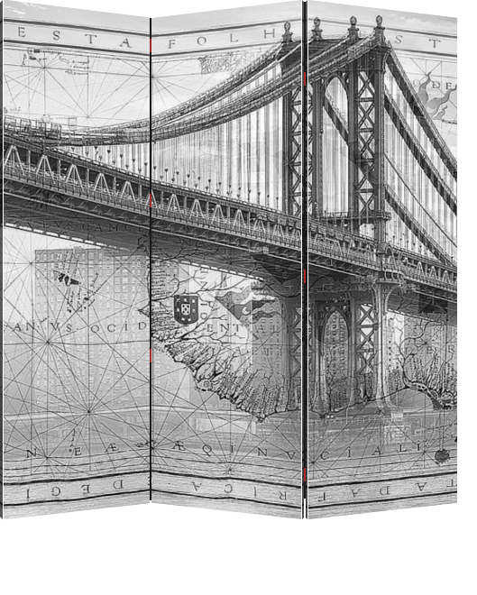 Описание ширмы Манхэттенский мост - висячий мост, пересекающий Ист-Ривер и соединяющий районы Нью-Йорка Манхэттен и Бруклин.