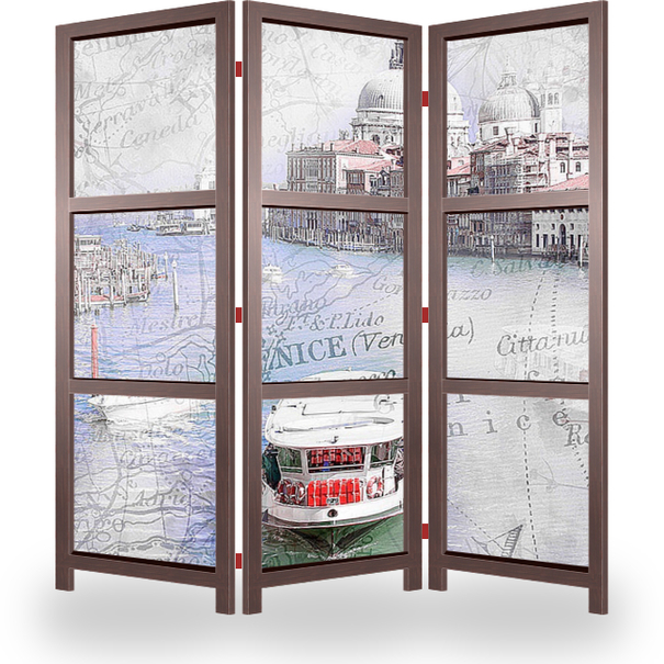 Описание ширмы Картина с изображением Большого канала в Венеции, Италия, на фоне карты и нежных роз, станет главным украшением вашей гостиной.
