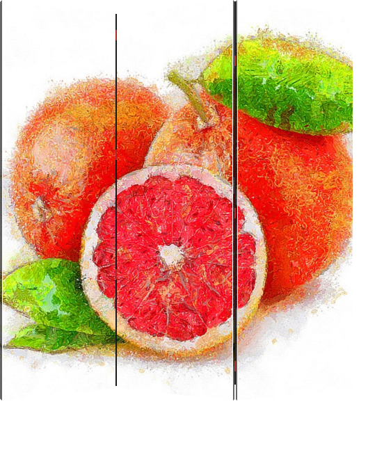 Описание ширмы На картине изображены три спелых апельсина с красивыми зелеными листиками