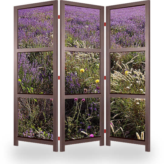 Описание ширмы Лавандовые поля Крыма живописны и прекрасны. Такой постер может украсить любое помещение вашего дома, квартиры, загородного дома, отеля и создаст в них особое настроение.