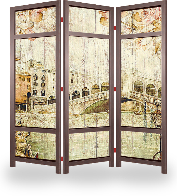 Описание ширмы Картина с изображением прекрасной старинной Венеции в окружении нежных роз будет отлично смотреться в любой комнате.