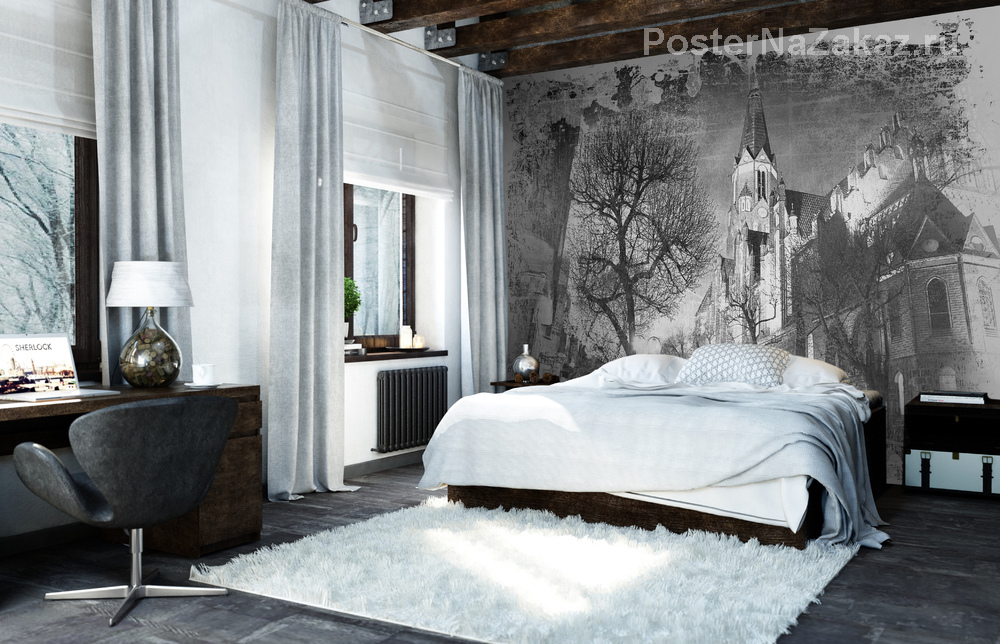 Изображение старинной улочки города с красивым замком в готическом стиле украсит и дополнит интерьер вашей спальни.