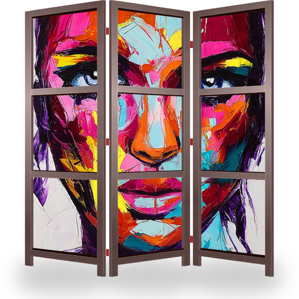 Описание ширмы Портрет девушки из серии "эмоции в ярких красках". Выполнен в технике крупных мазков, смесь абстрактного стиля, фовизма и поп-арта. Подходит для оформления интерьеров. Масло, мастихн, холст, 2017