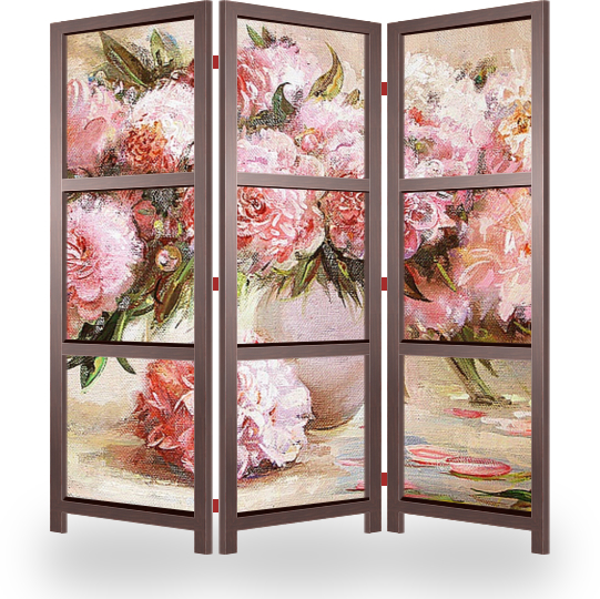 Описание ширмы Работа выполнена в оригинальной технике на холсте. Пион – носитель чистой энергии Ян. Существуют сотни расцветок пиона, но только красный цвет несет символизм любви, почета и богатства.