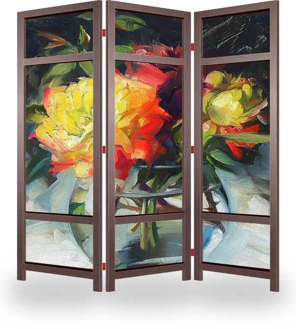 Описание ширмы Яркие розы - авторская картина Натальи Деревянко.
