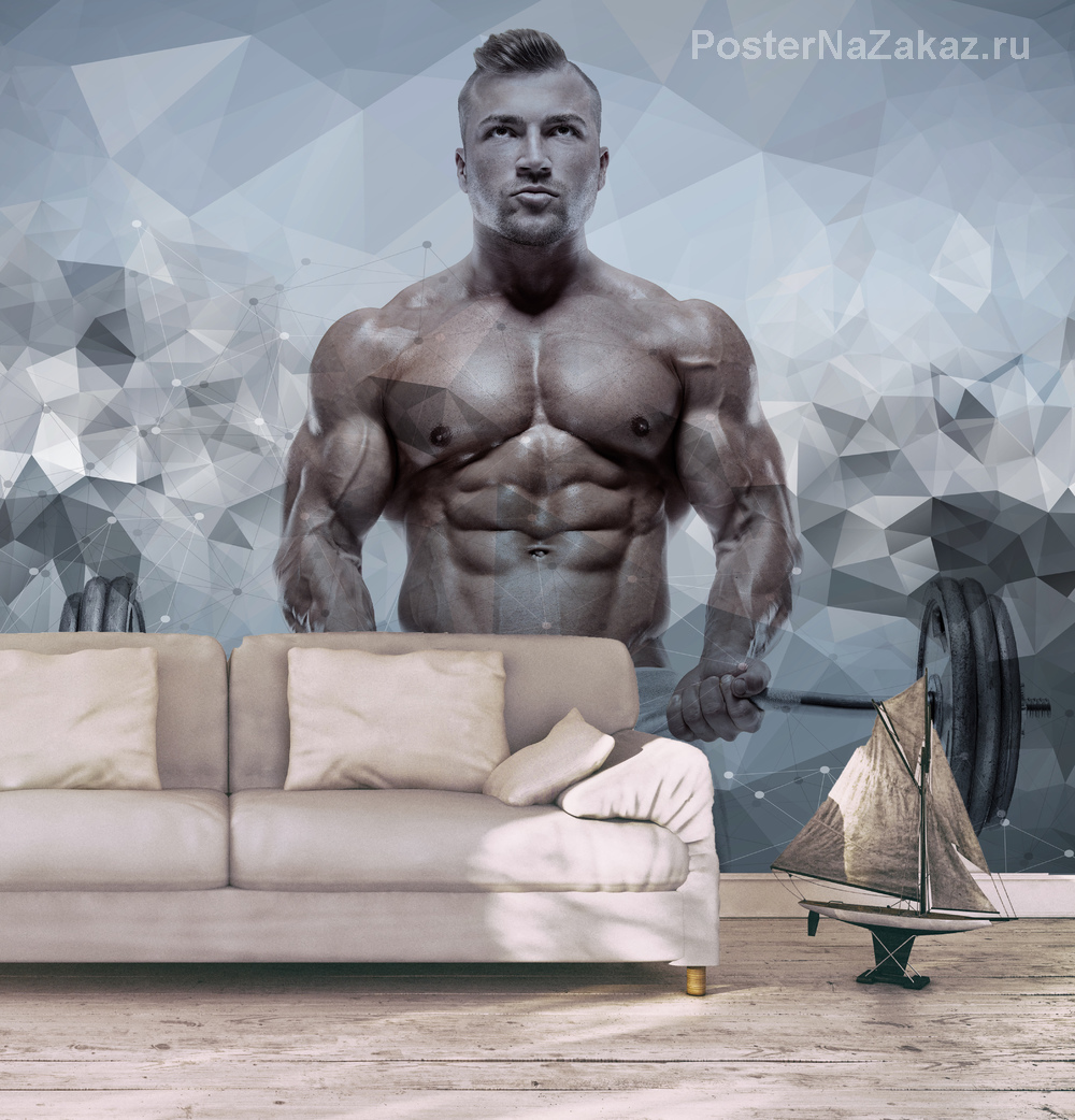 Фотообои с изображением бодибилдера, держащего штангу будет хорошо смотреться в мужской комнате или спортзале.