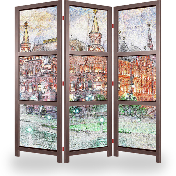 Описание ширмы Модульная картина с изображением Исторического музея в Москве в стиле рисунка от руки украсит и дополнит ваш интерьер.