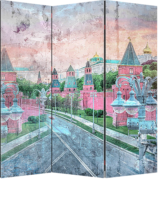 Описание ширмы Модульная картина с изображением прекрасного вида на закат над Московским Кремлем, отличное и интересное дополнение к оформлению Вашей комнаты