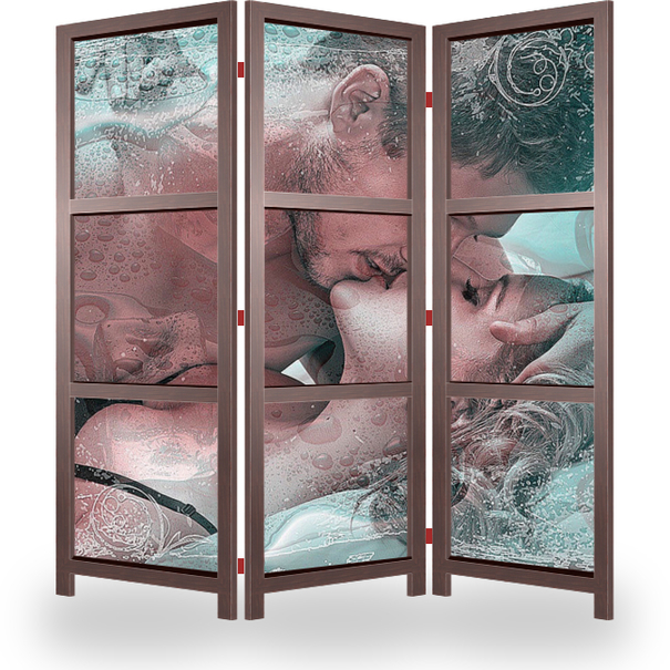 Описание ширмы Нежный поцелуй, картина в светлых тонах. Такая работа станет хорошим дополнением современного интерьера, подойдёт для комнаты отдыха или спальни.