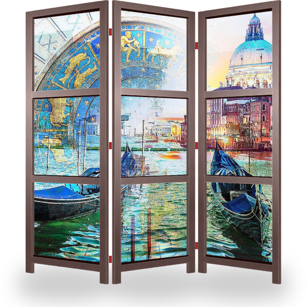 Описание ширмы Картина с изображением Венеции ранним утром будет хорошо смотреться в комнате с интерьером в светлых тонах.