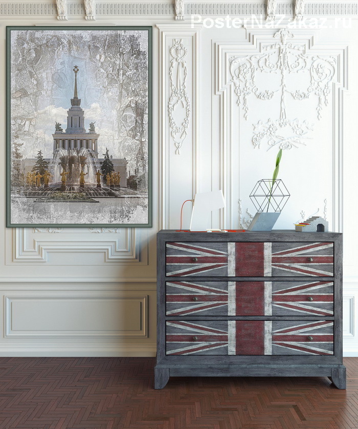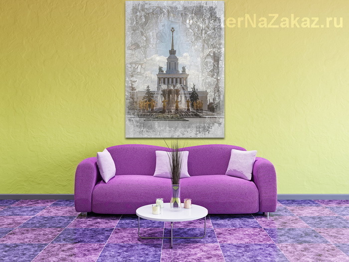 Описание ширмы Картина с изображением фонтана Дружбы народов на ВДНХ отлично смотреться как в кабинете, так и в гостиной.