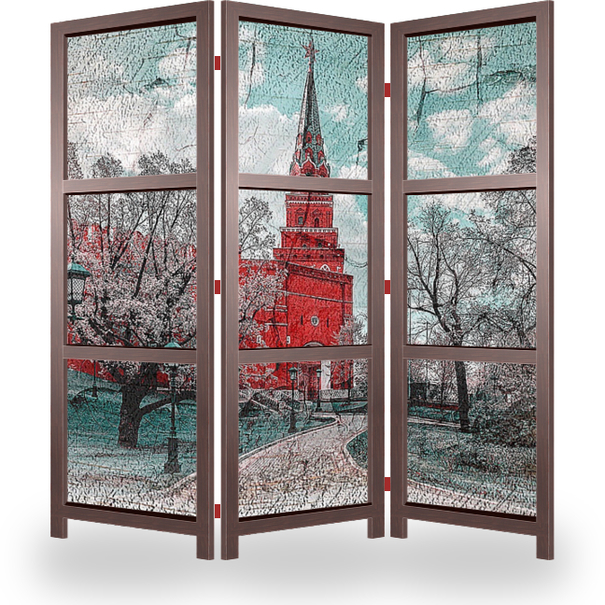 Описание ширмы Стилизованная картина, виды Московского кремля, такая работа станет хорошим дополнением современного интерьера, подойдёт для гостиной или комнаты отдыха.
