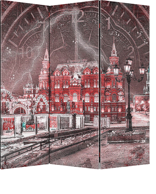 Описание ширмы Стилизованная картина, виды Московского кремля, такая работа станет хорошим дополнением современного интерьера, подойдёт для гостиной или комнаты отдыха.