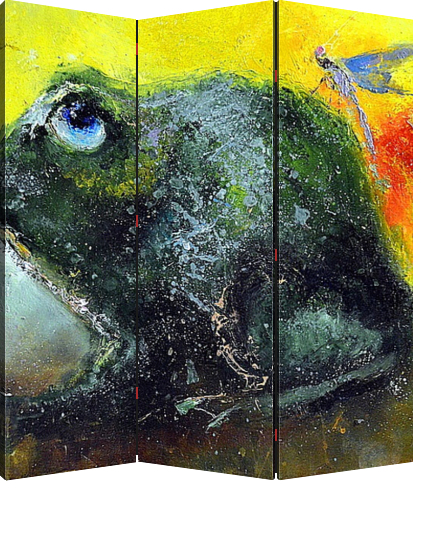 и хтоническими животными) приурочена соответственно к корням и к нижнему миру, прежде всего к подземным водам. Иногда она, подобно черепахе, рыбе или какому-либо морскому животному, держит на своей спине мир. С лягушкой связываются элементы хаоса - первоначального ила, из которого возник мир. Данная картина станет замечательным подарком как взрослому , так и ребёнку . Выполнена она маслеными красками и перламутровым акриком. А так же украсит Ваш дом или рабочее место.
