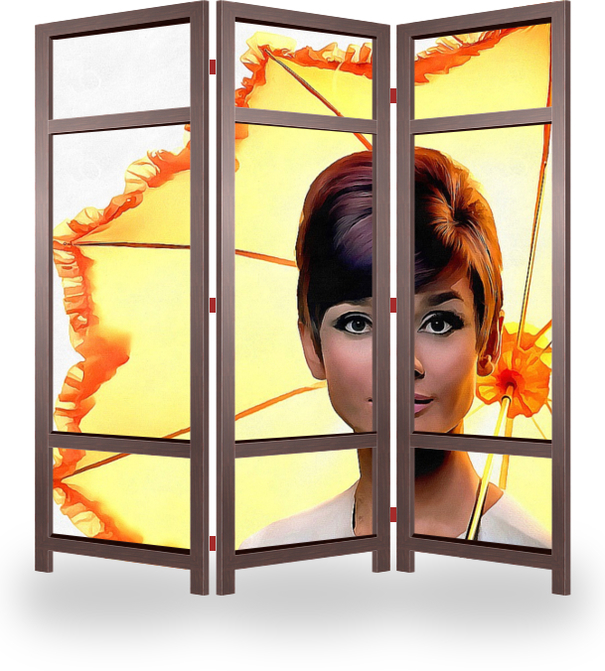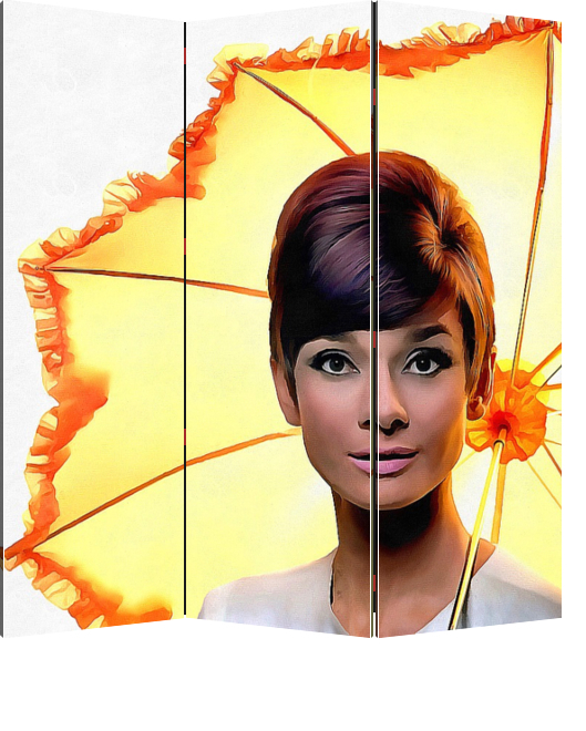 Описание ширмы На картине изображен портрет известной Одри Хепберн. Картина выполнена в специальной графической технике под акриловые краски