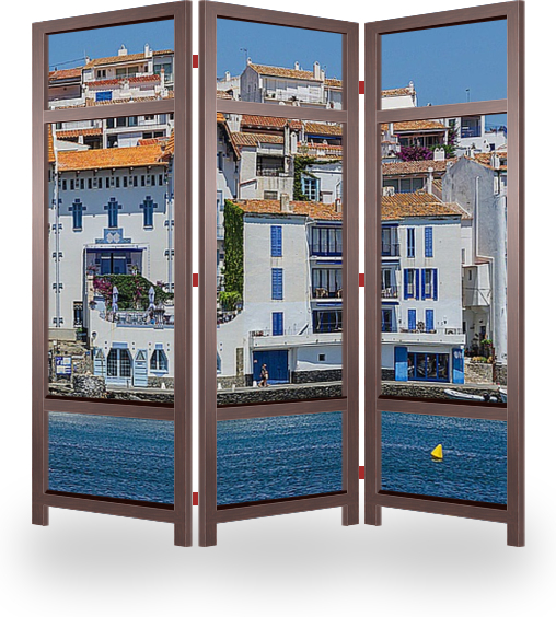 Описание ширмы Кадакес - Белоснежный рыбацкий городок на севере Коста Брава, расположившийся на берегу морского залива и затерявшийся среди оливковых рощ. Отделен от оставшейся части Каталонии горными вершинами. В нескольких километрах от Франции.