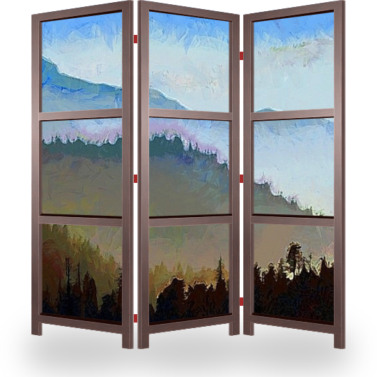 Описание ширмы На картине изображен туман в горах. Картина выполнена в специальной технике с крупными мазками