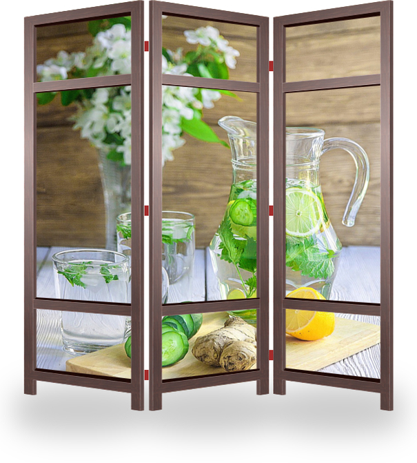 Описание ширмы Натюрморт "утренняя прохлада" очень хорошо отображает раннее летнее утро, когда солнце едва появилось из-за горизонта. Холодные тона, мята, лимон и имбирь - всё говорит о прохладе перед предстоящим жарким днём. Постер с этим натюрмортом создаст полно