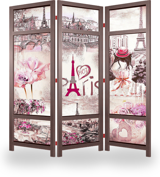 Описание ширмы Модульная картина с изображением различных архитектурных пейзажей с Эйфелевой башней в Париже в акварельном оформлении украсит и дополнит ваш интерьер.