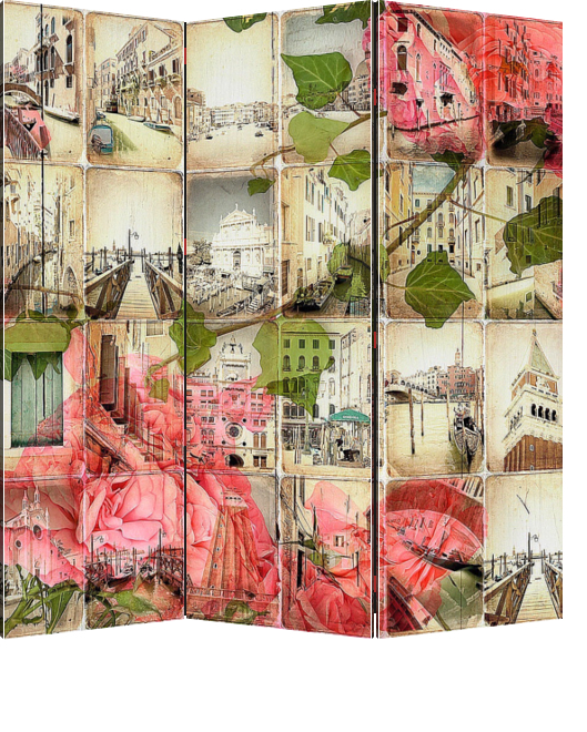 Описание ширмы Модульная картина с изображением ретро коллажа со всех уголков мира, отлично будет смотреться в любом интерьере