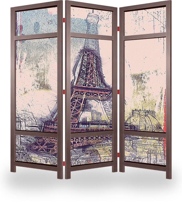 Описание ширмы Картина с изображением Эйфелевой башни стилизованной под чертеж подчеркнет необычность и неповторимость интерьера кабинета.