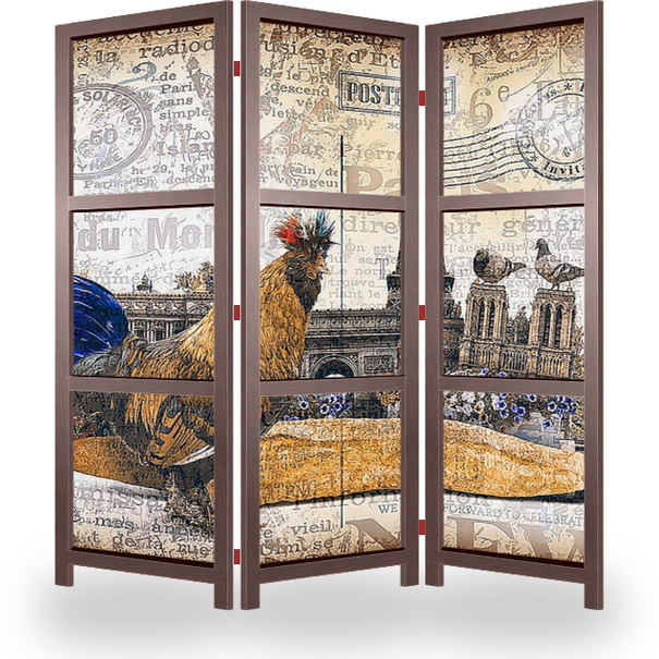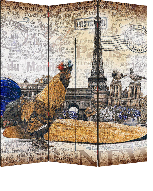 Описание ширмы Стилизованная картина, в виде открытки с различными достопримечательностями Парижа, такая работа станет хорошим дополнением современного интерьера, подойдёт для гостиной или комнаты отдыха.