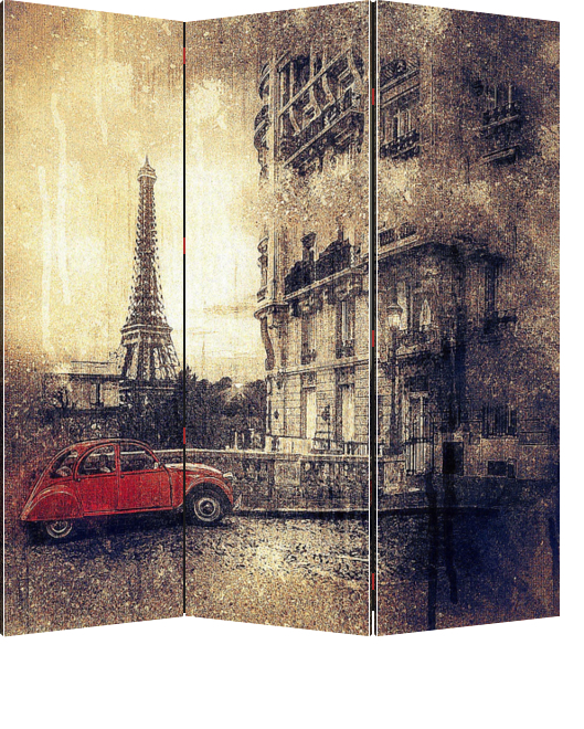 Описание ширмы Стилизованная картина, парижская улица с ярким акцентом, такая работа станет хорошим дополнением современного интерьера, подойдёт для гостиной или комнаты отдыха.