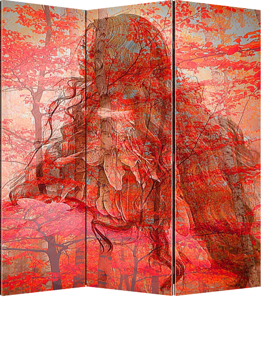 Описание ширмы Модульная картина с изображением женского портрета на фоне осеннего леса, отличное и прекрасное дополнение к оформлению вашей комнаты