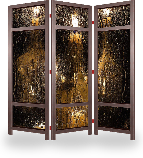 Описание ширмы Очередное моё упражнение в съёмке натюрморта за мокрым стеклом. Свечи очень хорошо смотрятся сквозь пелену дождя и потоки воды. Едва различимые силуэты бутылок придают картине загадочность и недосказанность.