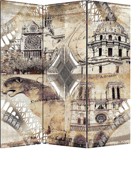 Описание ширмы Модульная картина с изображением различных архитектурных достопримечательностей Парижа украсит и дополнит ваш интерьер.
