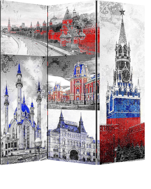 Описание ширмы Модульная картина с изображением различных архитектурных достопримечательностей России украсит и дополнит ваш интерьер.