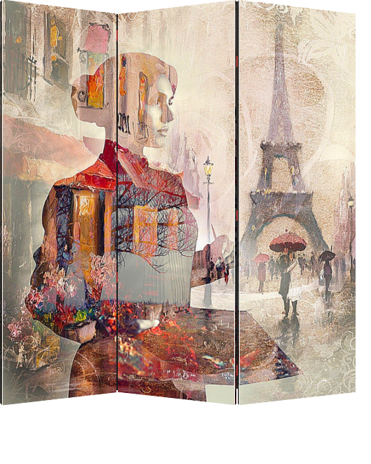 Описание ширмы Модульная картина с изображением художника в Париже на фоне Эйфелевой башни и улочки с магазинами украсит и дополнит ваш интерьер.