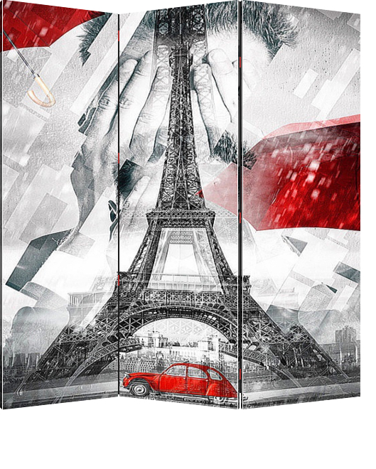 Описание ширмы Модульная картина с изображением Эйфелевой башни в Париже среди ярких красных акцентов украсит и дополнит ваш интерьер.