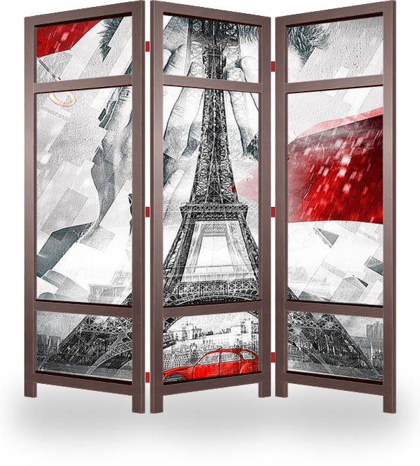 Описание ширмы Модульная картина с изображением Эйфелевой башни в Париже среди ярких красных акцентов украсит и дополнит ваш интерьер.