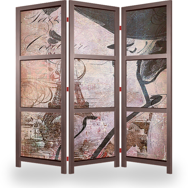 Описание ширмы Картина с изображением Эйфелевой башни на фоне девушки настроит на романтический лад интерьер комнаты.