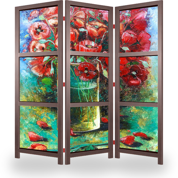 Описание ширмы Цветы маков всегда приятно рассматривать, Нежные и красивые лепестки так и тянут прикоснуться к ним.