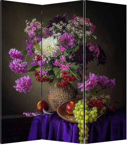 Описание ширмы красивый букет садовых цветов привлечет внимание своей изысканностью и богатством красок