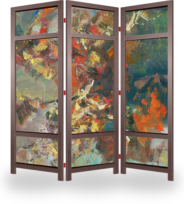 Описание ширмы из серии абстрактных живописных полотен, где главным героем является цвет, цветовые отношения, формирующие определённое настроение в интерьере.