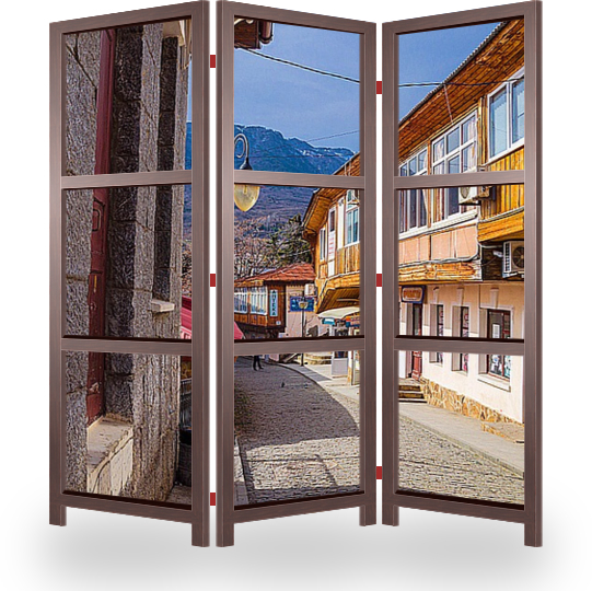 Описание ширмы Интересно гулять по узеньким улочкам старого Гурзуфа. В них есть особое очарование и налёт старины. Такой постер может украсить любое помещение в вашем доме, квартире, офисе, отеле, турфирме.