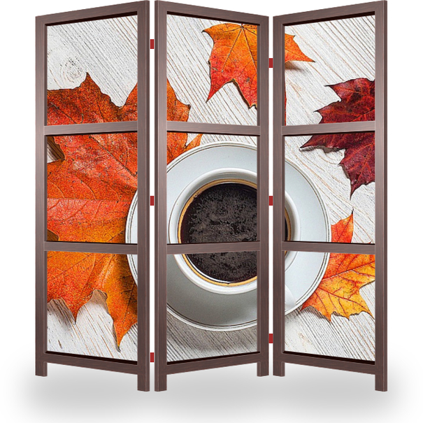 Описание ширмы Концепт осеннего утра. Чашечка крепко, бодрящего кофе эспрессо, осенние листья клена. Упоительный аромат свежесваренного кофе. Доброго утра и бодрости на весь день!