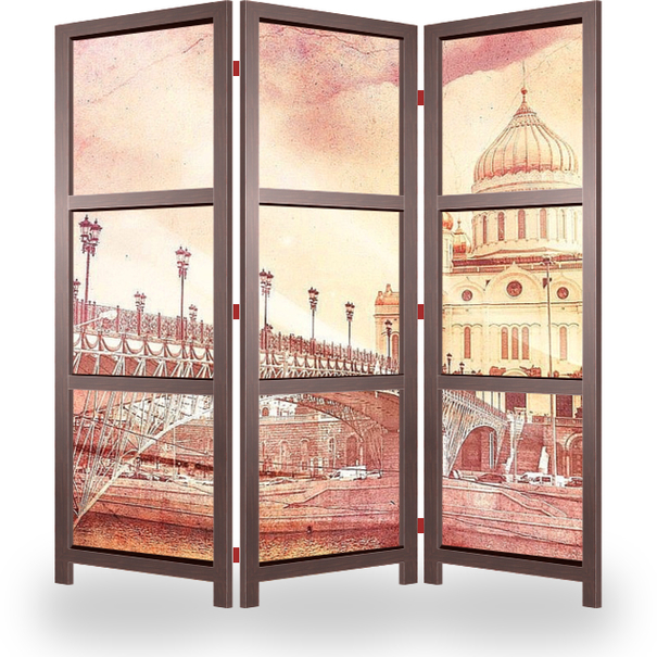 Ширма эконом отлично подойдет для временного размещения, рекламы, для отгораживания объектов интерьера и его дополнения. Лицевая сторона с изображением, обратная сторона открытый каркас