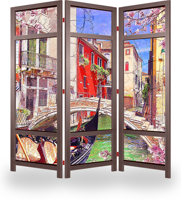 Ширма эконом отлично подойдет для временного размещения, рекламы, для отгораживания объектов интерьера и его дополнения. Лицевая сторона с изображением, обратная сторона открытый каркас